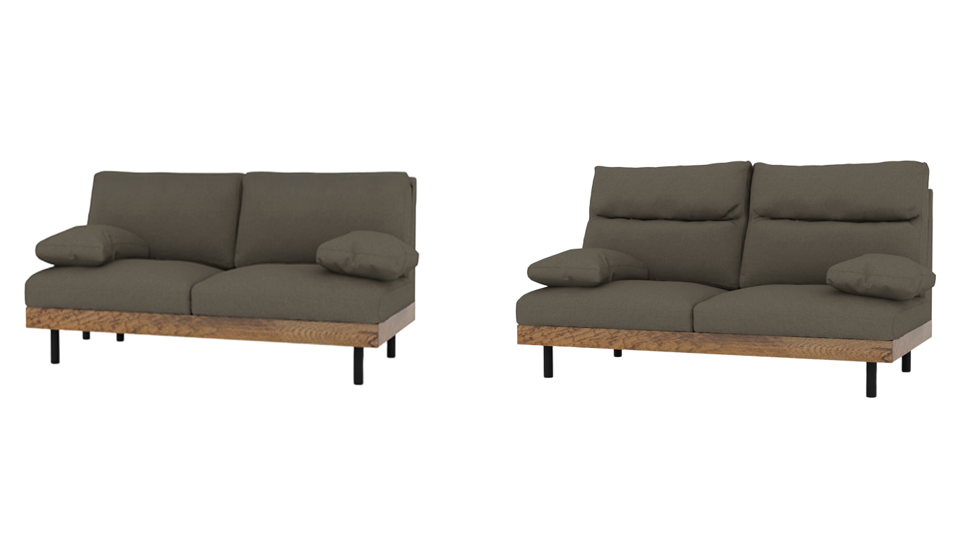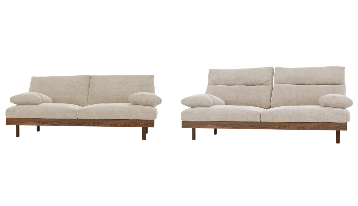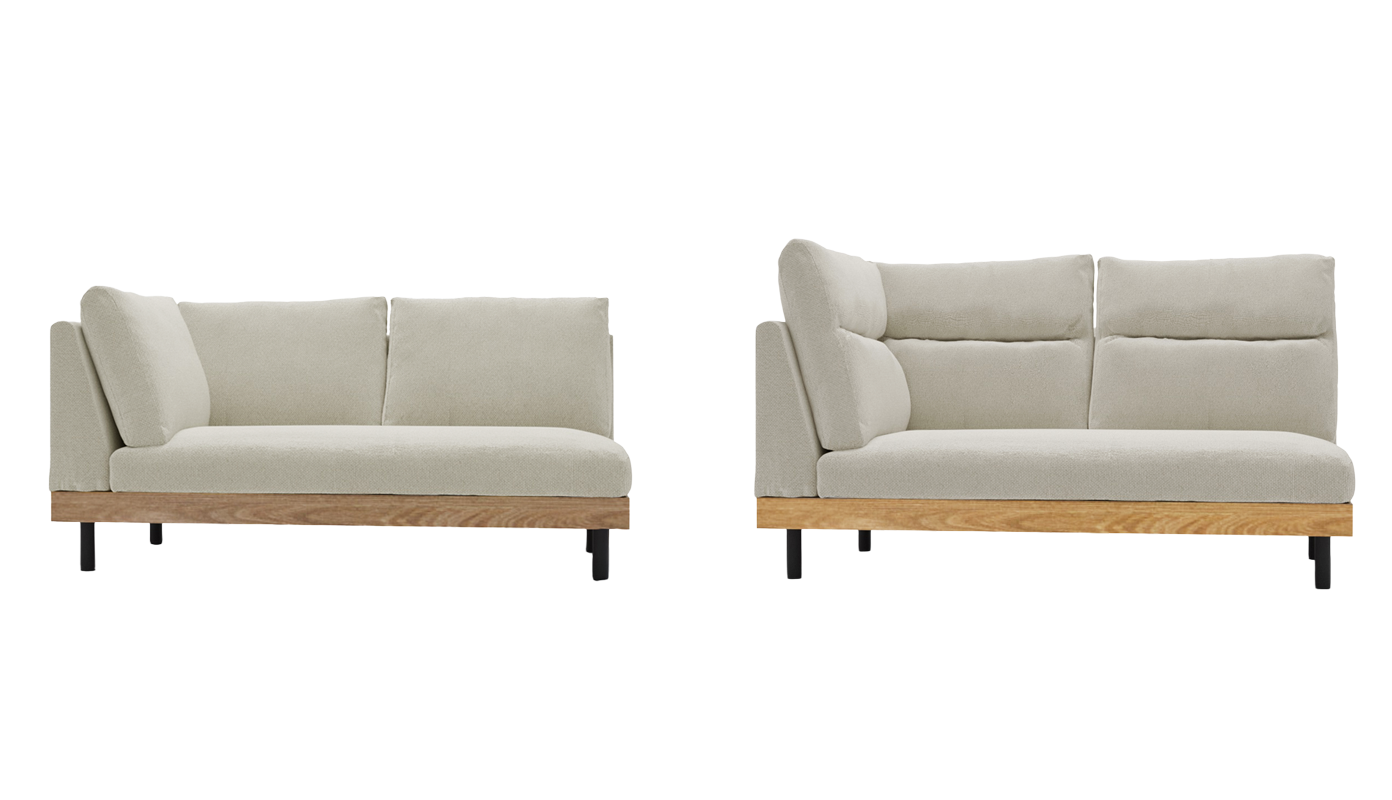 空間やライフスタイルに合わせて自在に組み替えられる、モジュール式ソファ。直線的でミニマルなフォルムを基調としながら、ユニットごとに配置を変えることで、コーナーソファや対面レイアウトなど、多彩なスタイルを実現します。背クッションの高さ、脚部のカラー、フレームのカラーはそれぞれ自由に組み合わせが可能。