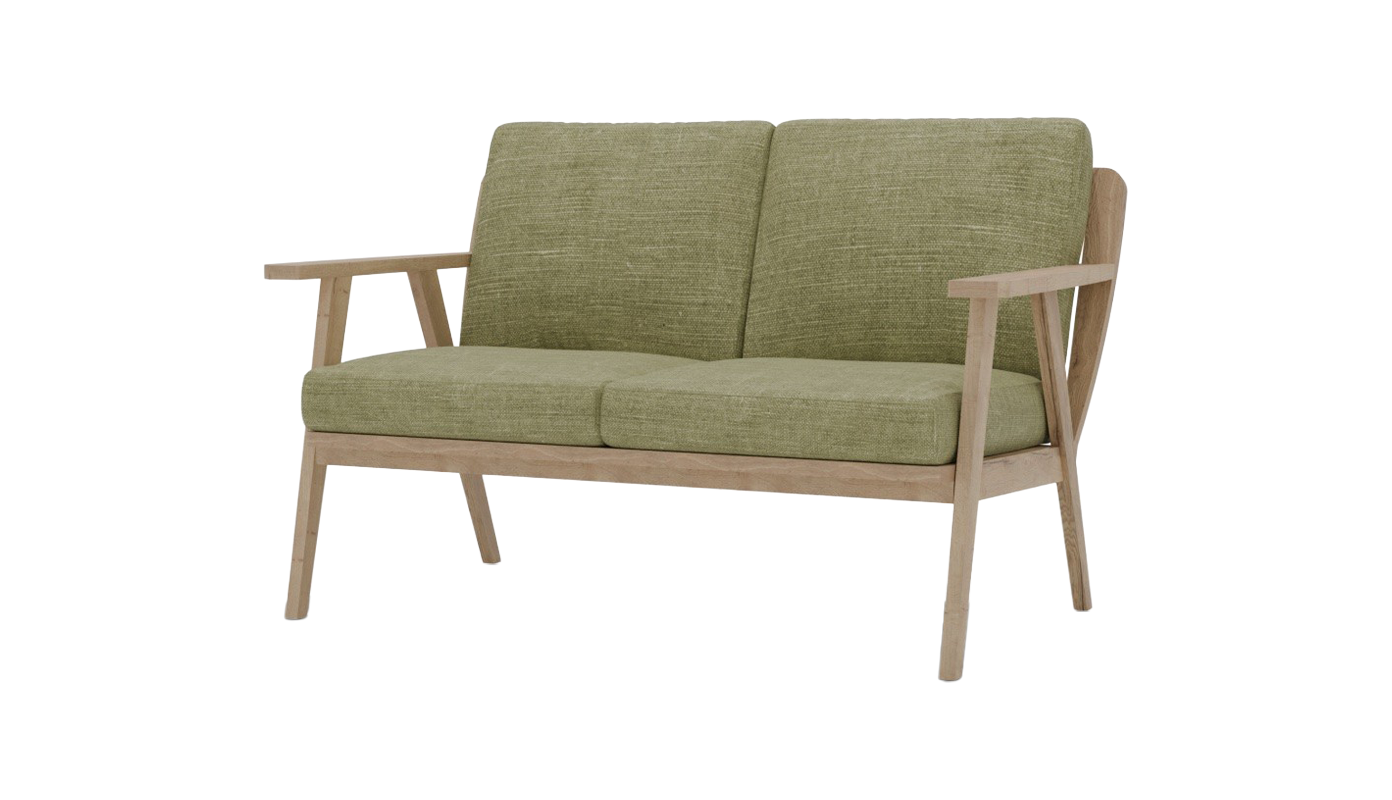 シンプルで洗練されたデザインが魅力のノックダウン式(組み立て式)ウッドフレームソファ。