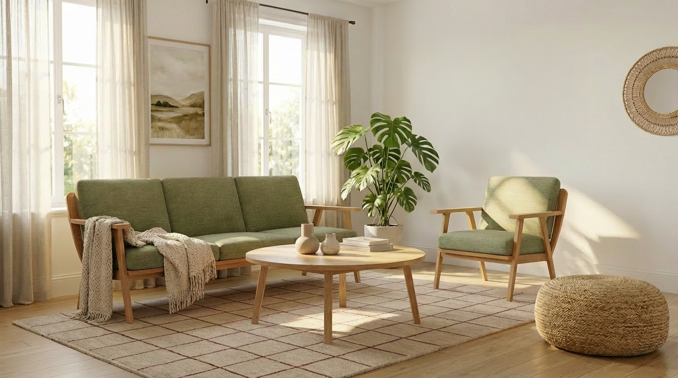 Firefly_Gemini Flash_モダンナチュラルテイストのリビングにレイアウトした画像を作って_左の植物を消して_床を明るめのコンクリート調に変更して_スローケットを