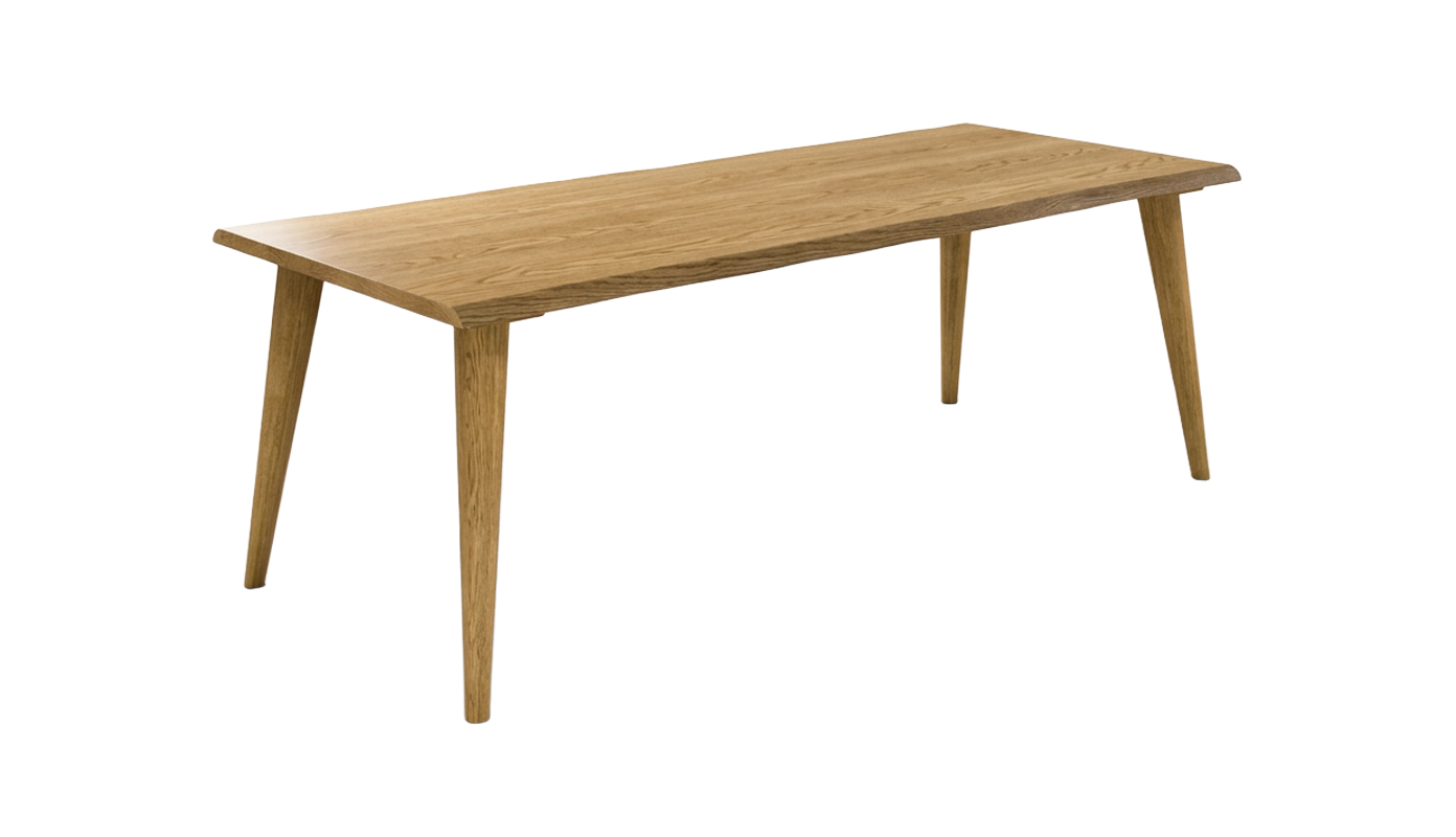 無垢材天板が生み出す、確かな存在感と上質な佇まいのダイニングテーブル。天板には、木の表情を存分に楽しめる無垢材を使用。