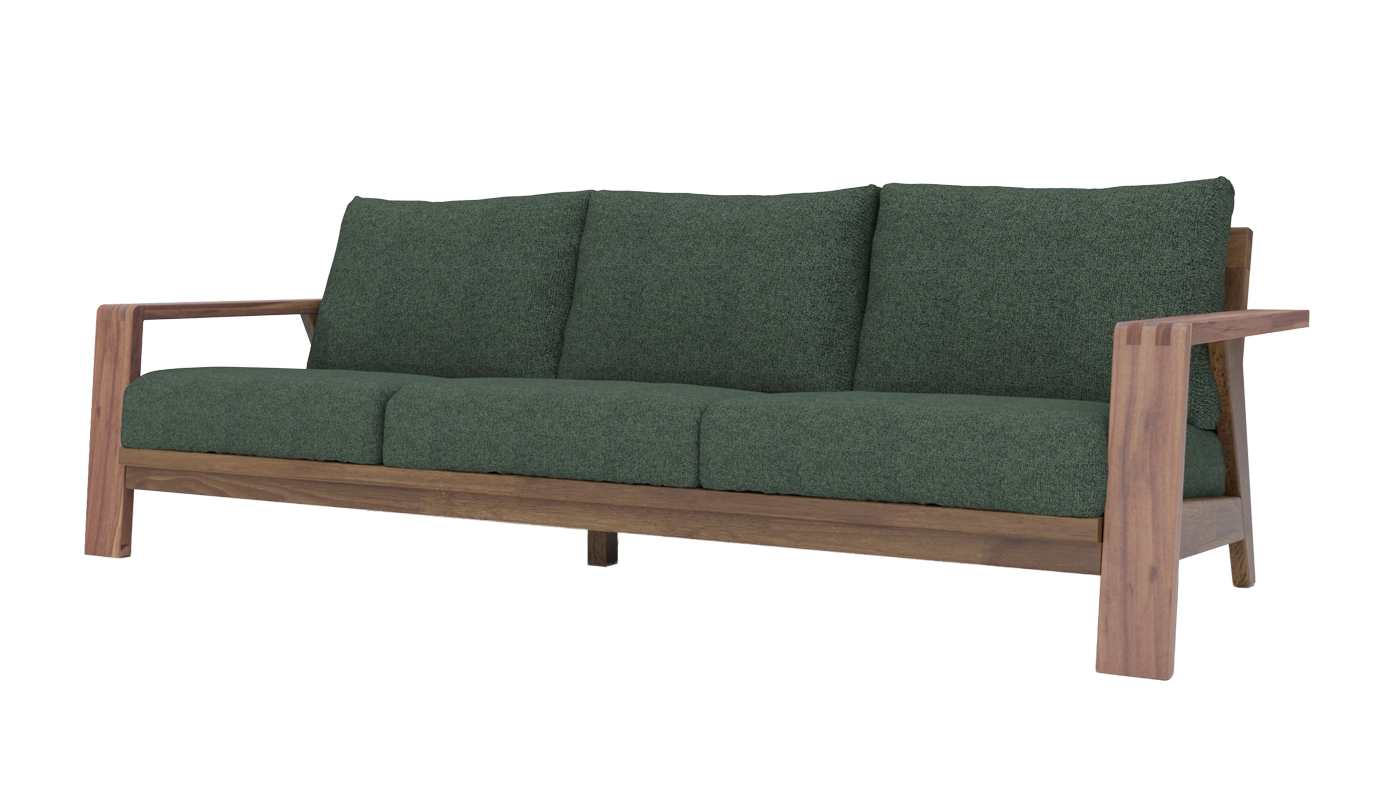 天然木を使用したインダストリアルなデザインのウッドソファ。広々とした座面と厚みのあるクッションにより、快適な座り心地を実現。フレームの背面のデザインをアイアン、もしくはウッドの2種類からお選びいただけます。