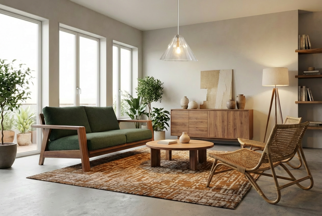 Firefly_Gemini Flash_モダンナチュラルテイストのリビングにレイアウトした画像を作って_左の植物を消して_床を明るめのコンクリート調に変更して_スローケットを