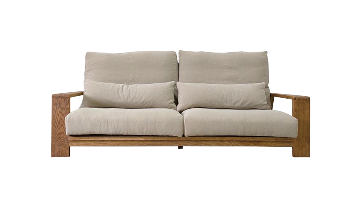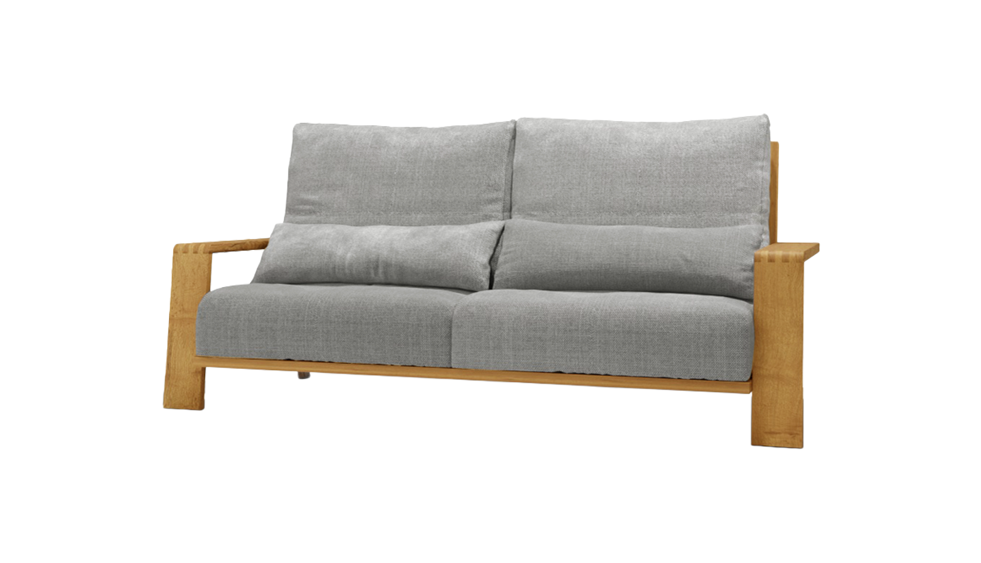 ハイバックタイプの快適性とデザイン性を兼ね備えたウッドフレームソファ。