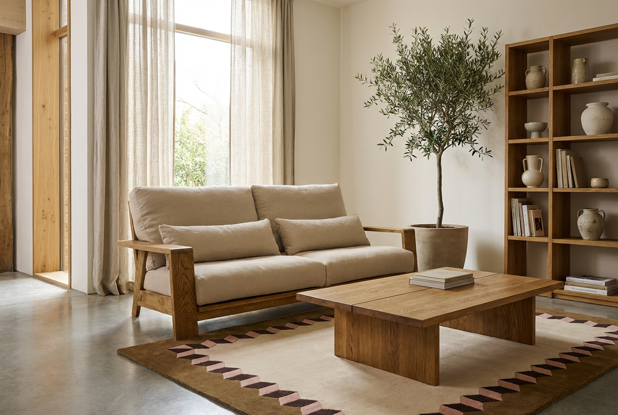 Firefly_Gemini Flash_モダンナチュラルテイストのリビングにレイアウトした画像を作って_左の植物を消して_床を明るめのコンクリート調に変更して_スローケットを