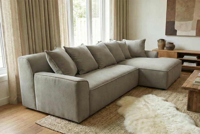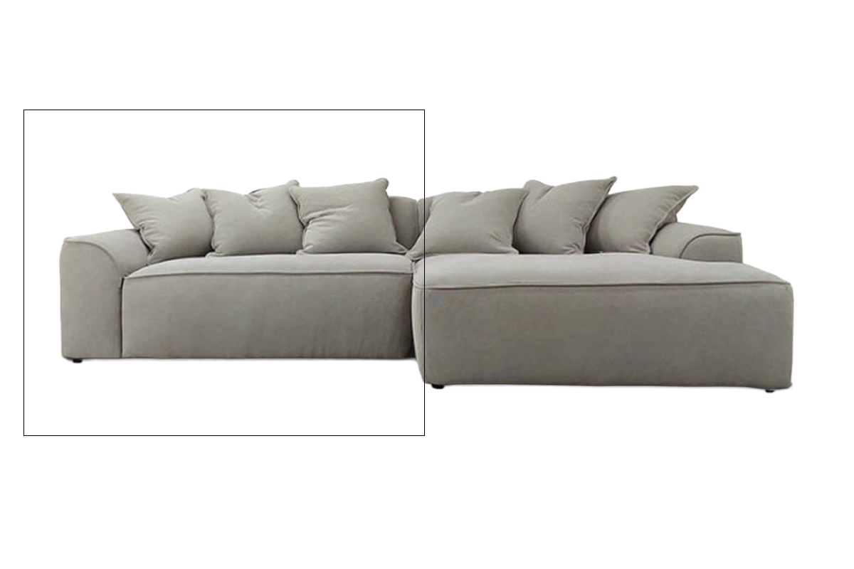 広めの奥行きで、深く腰掛けたり横になったりと自由なスタイルで過ごせます。角のないフォルムはやわらかな印象を与え、豊富なクッションとあわせて心地よい風合いを演出。